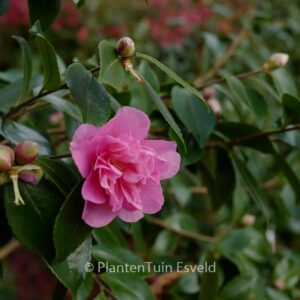 gevuldbloemige Camellia herfstbloeier van Ackermann Ackerman hybriden staan bekend om hun winterhardheid, zo ook deze hybride van hiemalis en oleifera. De bloeitijd is vroeg in de winter. De hoogte na 10 jaar is 250 cm. De bloemkleur is helderrose. De bloeiperiode is november – december. Deze plant is goed winterhard. Nederlandse naam : Camellia . . Alleen op bestelling leverbaar. Levertijd minstens 1 week.