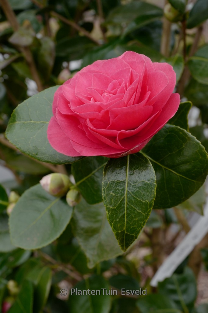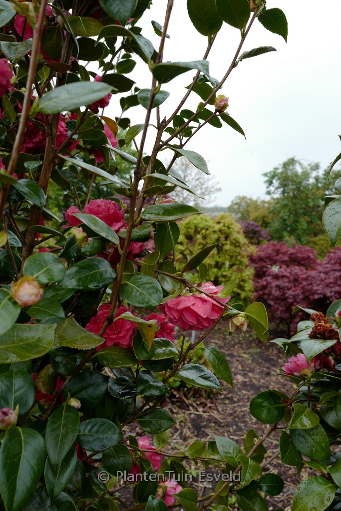 rijk en lang bloeiende tuincamellia, gevuldbloemig Franse cultivar uit het midden van de 20e eeuw, maar pas de laatste jaren wat bekender aan het worden. Het is geen camellia met sterk onderscheidende eigenschappen, maar wel gewoon een goede gezonde cultivar en dat is ook wat waard. De hoogte na 10 jaar is 200 cm. De bloemkleur is roserood. De bloeiperiode is maart – april. Deze plant is goed winterhard. Nederlandse naam : Japanse roos . . Is aanwezig op de kwekerij. Kijk ook op de voorraadlijst op onze site.