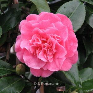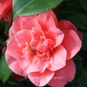 winterharde camellia vroeg tot middelvroeg bloeiend Een fraaie Amerikaanse introductie uit 1957. De vriendelijke zalmroze bloemkleur staat ons wel aan. Het is een vrij vroege bloeier. De hoogte na 10 jaar is 150 cm. De bloemkleur is zalmrose. De bloeiperiode is februari – maart. Deze plant is goed winterhard. Aanbevolen aantal per vierkante meter : 1. Nederlandse naam : Japanse roos . . Is aanwezig op de kwekerij. Kijk ook op de voorraadlijst op onze site.