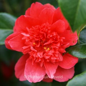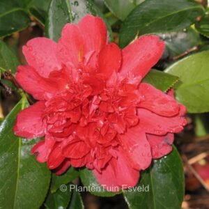 dubbelbloemige camellia met heldere bloemkleur. De hoogte na 10 jaar is 200 cm. De bloemkleur is rood. De bloeiperiode is maart – april. Deze plant is matig winterhard. Aanbevolen aantal per vierkante meter : 2. Nederlandse naam : Japanse roos . . Is aanwezig op de kwekerij. Kijk ook op de voorraadlijst op onze site.