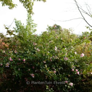 vroegbloeiende camellia met geurende bloemen In de halfschaduw groeit deze enkelbloemige geurende Camellia het beste. Het is een groeikrachtige sasanqua selectie, geintroduceerd door Overlook Nursery in Alabama, maar van oorsprong een Japanse cultivar. Een beetje pronken met andermans veren. De hoogte na 10 jaar is 2 meter. De bloemkleur is rose. De bloeiperiode is november. Deze plant is goed winterhard. Aanbevolen aantal per vierkante meter : 1. Nederlandse naam : Camellia . . Is aanwezig op de kwekerij. Kijk ook op de voorraadlijst op onze site.