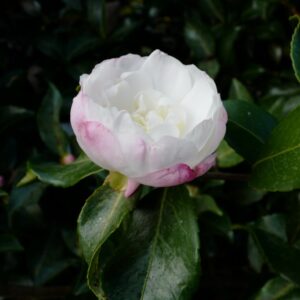 bontbladige Camellia bloei in late herfst of vroege winter. De hoogte na 10 jaar is 2 meter. De bloemkleur is roze in de knop; later wit. De bloeiperiode is november – februari. Deze plant is goed winterhard. Aanbevolen aantal per vierkante meter : 1. Nederlandse naam : Camellia . . Is aanwezig op de kwekerij. Kijk ook op de voorraadlijst op onze site.