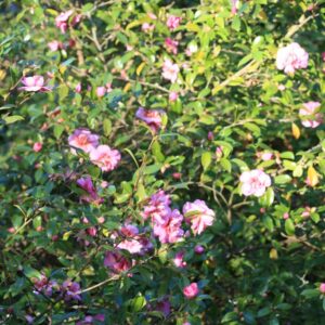Gevuld, licht geurend; langzaam groeiend. De hoogte na 10 jaar is 1,5 m. De bloemkleur is fel rose. De bloeiperiode is oktober – december. Deze plant is goed winterhard. Aanbevolen aantal per vierkante meter : 1. Nederlandse naam : Camellia . . Is aanwezig op de kwekerij. Kijk ook op de voorraadlijst op onze site.