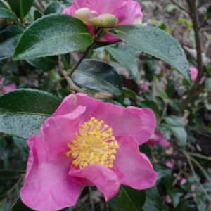 herfstbloeiende camellia met enkele geurende bloemen Net als de andere Camellia sasanqua cultivars moeten we deze plant hogelijk waarderen om zijn unieke bloeitijd, elegantie en aangename bloemengeur. Overigens geurt de Vicomte niet heel sterk, maar dat is voor olfactorisch sterk ontwikkelde tuiniers eerder een voordeel. De hoogte na 10 jaar is 250 cm. De bloemkleur is donkerrose. De bloeiperiode is oktober – december. Deze plant is goed winterhard. Aanbevolen aantal per vierkante meter : 1. Nederlandse naam : Camellia . . Is aanwezig op de kwekerij. Kijk ook op de voorraadlijst op onze site.