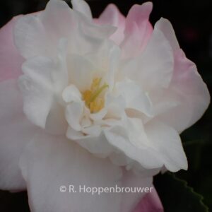 Talrijke, halfgevulde, kleine bloemen Camellia transnokoensis en japonica Edith Linton staan aan de basis van deze Australische cultivar. De pioenvormig gevulde bloemen zijn verschillende tinten wit tot roze. De hoogte na 10 jaar is 2 meter. De bloemkleur is pastelkleurig rose. De bloeiperiode is maart – april. Deze plant is goed winterhard. Aanbevolen aantal per vierkante meter : 1. Nederlandse naam : Camellia . . Is aanwezig op de kwekerij. Kijk ook op de voorraadlijst op onze site.