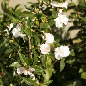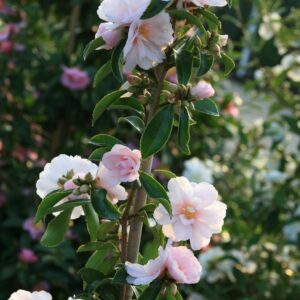 dubbelbloemige Camellia met vrij smal blad, laagblijvend De zeer langzame groei van deze Ackerman hybride maakt hem tot een buitenbeentje. Helaas is een kleine schudbeurt af en toe wel nodig om de struik te schonen van de uitgebloeide bloemen. Zeer geschikt voor de wat kleinere tuin en vanzelfsprekend goed winterhard. De hoogte na 10 jaar is 100 cm. De bloemkleur is rose. De bloeiperiode is november – december. Deze plant is goed winterhard. Nederlandse naam : Camellia . . Is aanwezig op de kwekerij. Kijk ook op de voorraadlijst op onze site.