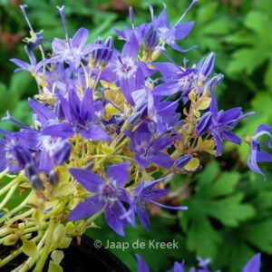 Goudgeel blad; vormt ronde compacte, kleine pollen. De gemiddelde hoogte is 10 cm. De bloemkleur is lichtpaars. De bloeiperiode is juni – juli. Deze plant is zeer winterhard. Aanbevolen aantal per vierkante meter : 9. Dit artikel is slechts in kleine hoeveelheden beschikbaar en kan plotseling niet meer leverbaar blijken. Nederlandse naam : Klokjesbloem . . Alleen op bestelling leverbaar. Levertijd minstens 1 week.