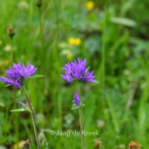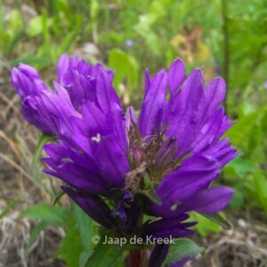 Staat op de rode lijst van beschermde wilde planten voor NL. Dus bij de kweker kopen! De cultivars van dit soort bloeien rijker, kijk hieronder. De gemiddelde hoogte is 40. De bloemkleur is paars. De bloeiperiode is mei – juni. Deze plant is goed winterhard. Aanbevolen aantal per vierkante meter : 5. Nederlandse naam : Kluwenklokje . . Alleen op bestelling leverbaar. Levertijd minstens 1 week.