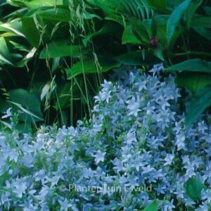 Servisch kruipklokje met witte bloemen in hartje zomer. Uitstekende bodembedekker, die ook halfschaduw accepteert. Na de bloei afknippen tot de basis geeft een groene toef in de winter. De gemiddelde hoogte is 15 cm. De bloemkleur is wit. De bloeiperiode is juni – augustus. Deze plant is goed winterhard. Aanbevolen aantal per vierkante meter : 5. Dit artikel is slechts in kleine hoeveelheden beschikbaar en kan plotseling niet meer leverbaar blijken. Nederlandse naam : Kruipklokje . . Alleen op bestelling leverbaar. Levertijd minstens 1 week.