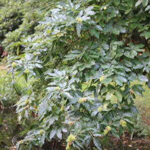 Tamme kastanje, eetbare vruchten, decoratief blad dat in het geheel niet lijkt op onze paardekastanje. In het zuiden van Europa veel aangeplant voor zijn vruchten, want bij warm weer gaat de vruchtontwikkeling nu eenmaal beter. De hoogte na 10 jaar is 5 m. De bloemkleur is wit. De bloeiperiode is mei. Deze plant is zeer winterhard. Aanbevolen aantal per vierkante meter : 1. Nederlandse naam : Tamme kastanje . . Alleen op bestelling leverbaar. Levertijd minstens 1 week. . . . . .