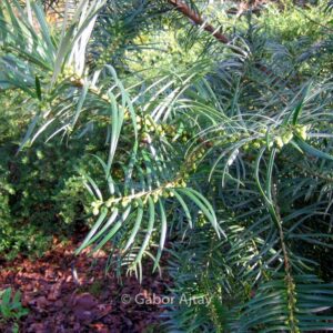 Chinese conifeer met lange , wintergroene naalden voor schaduw tot halfschaduw in goed doorlatende, humusrijke grond. De hoogte na 10 jaar is 2 m. De bloemkleur is onopvallend. De bloeiperiode is mei. Deze plant is goed winterhard. Aanbevolen aantal per vierkante meter : 1. Nederlandse naam : Knoptaxus . . Alleen op bestelling leverbaar. Levertijd minstens 1 week.