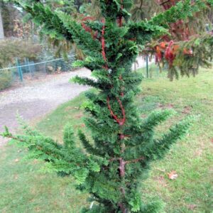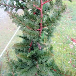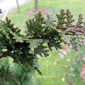 Dwergsoort met varenachtig blad; compacte en dichte groeiwijze. De hoogte na 10 jaar is 1 meter. De bloemkleur is paars. De bloeiperiode is april. Deze plant is zeer winterhard. Aanbevolen aantal per vierkante meter : 3. Nederlandse naam : Japanse cipres . . Is aanwezig op de kwekerij. Kijk ook op de voorraadlijst op onze site. .