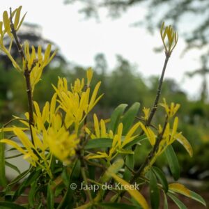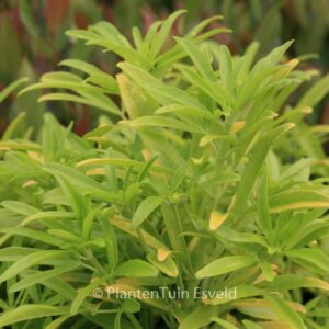 Blad smal en goudgeel; sterk geurende bloemen waarvan de geur het meeste doet denken aan citrusbloesem. In de zon zijn de bladeren sprekend geel, maar in de schaduw een zachte kleur lichtgroen. Het is een multi inzetbare struik, juist omdat hij zon zowel als schaduw verdraagt. Droogte tolerant, maar regen is ook okay. De hoogte na 10 jaar is 1 meter. De bloemkleur is wit. De bloeiperiode is april – mei. Deze plant is matig winterhard. Aanbevolen aantal per vierkante meter : 1. Nederlandse naam : Choisya . . Is aanwezig op de kwekerij. Kijk ook op de voorraadlijst op onze site. . . .