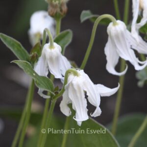 Integrifolia groep golvende kelkbladen. De hoogte na 10 jaar is 75 cm. De bloemkleur is wit. De bloeiperiode is juni – augustus. Deze plant is goed winterhard. Aanbevolen aantal per vierkante meter : 1. Nederlandse naam : Clematis . . Is aanwezig op de kwekerij. Kijk ook op de voorraadlijst op onze site. .