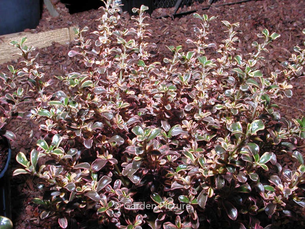 Sterk glimmend donkergroen blad met oranjerode rand De winterhardheid van deze spectaculair gekleurde wintergroene heester is echt twijfelachtig, al hebben we ze op een goed gedraineerde grond op een beschutte standplaats ook wel goed door de winter zien komen. De hoogte na 10 jaar is 35 cm. Deze plant is matig winterhard. Aanbevolen aantal per vierkante meter : 5. . . Is aanwezig op de kwekerij. Kijk ook op de voorraadlijst op onze site.