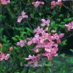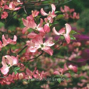 rijkbloeiende Amerikaanse paars-rode herfstkleur Ook in zwaardere maten leverbaar, prijzen op aanvraag. De hoogte na 10 jaar is 5 m. De bloemkleur is donkerrose met lichtere basis. De bloeiperiode is mei – juni. Deze plant is zeer winterhard. Aanbevolen aantal per vierkante meter : 1. Nederlandse naam : Veelbloemige kornoelje Mogelijk alternatief : Cornus florida ‘Sweetwater Red’. Belangrijkste verschil: Cornus florida ‘Rubra’ bloemen lichter rose. . Alleen op bestelling leverbaar. Levertijd minstens 1 week.