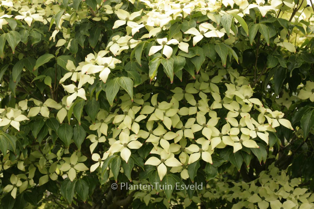 lange bloei, groot blad blad mooi donkerblauwgroen. De hoogte na 10 jaar is 250 cm. De bloemkleur is wit. De bloeiperiode is mei – juli. Deze plant is goed winterhard. Aanbevolen aantal per vierkante meter : 1. Nederlandse naam : Japanse grootbloemige kornoelje . . Alleen op bestelling leverbaar. Levertijd minstens 1 week.