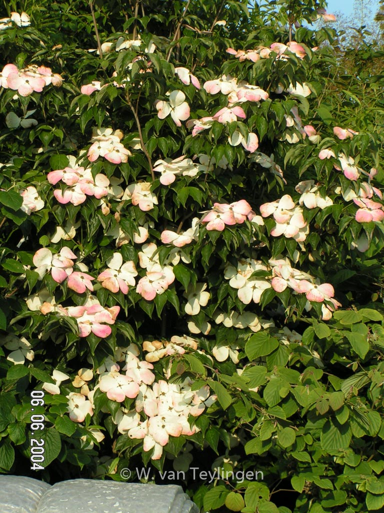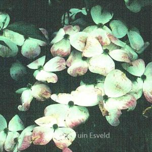 grootbloemige amerikaanse kornoelje. De hoogte na 10 jaar is 4 meter. De bloemkleur is wit. De bloeiperiode is mei – juni. Deze plant is zeer winterhard. Aanbevolen aantal per vierkante meter : 1. Nederlandse naam : Kornoelje . . Alleen op bestelling leverbaar. Levertijd minstens 1 week.