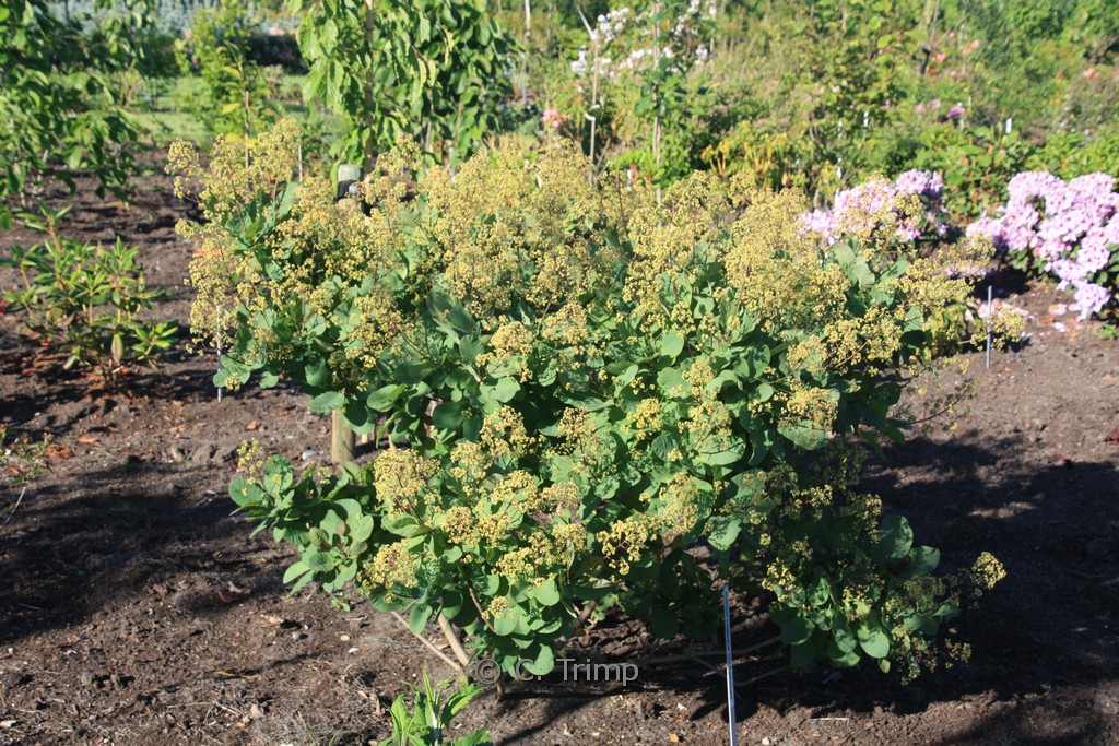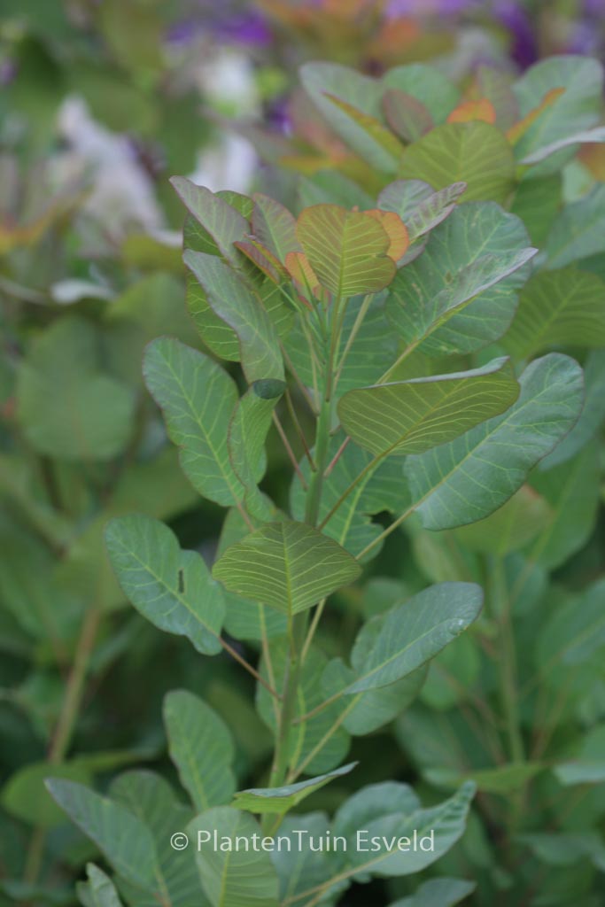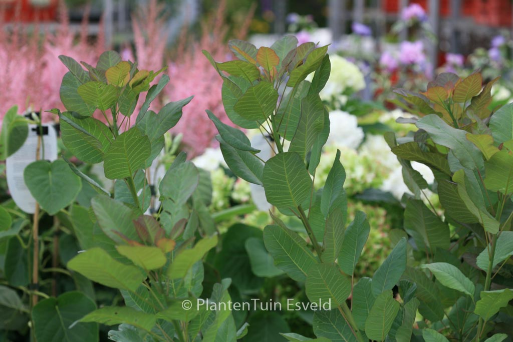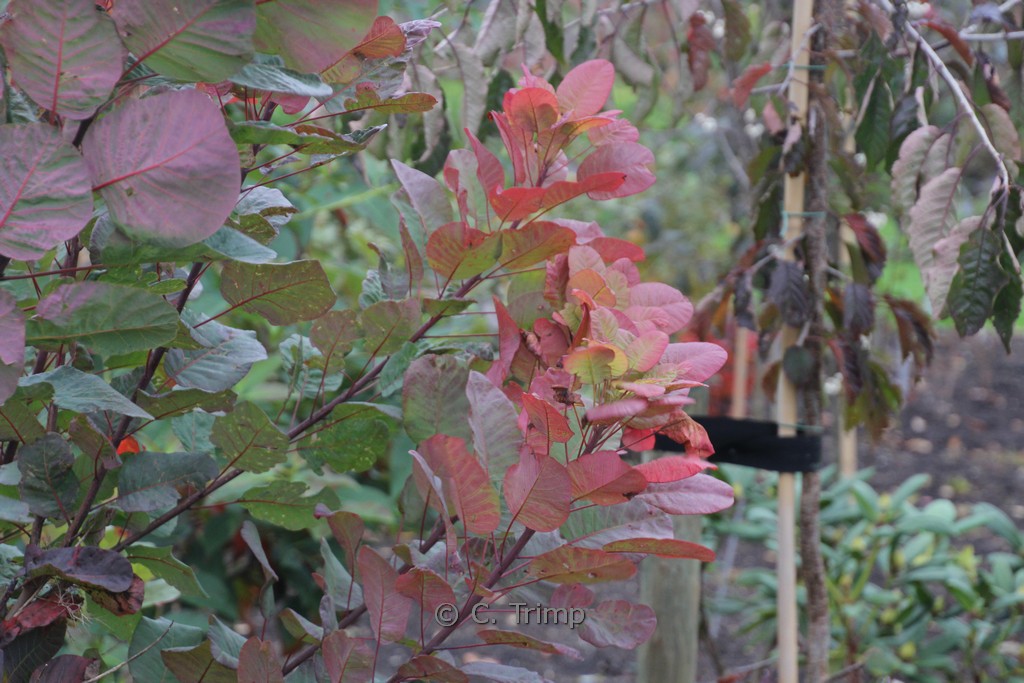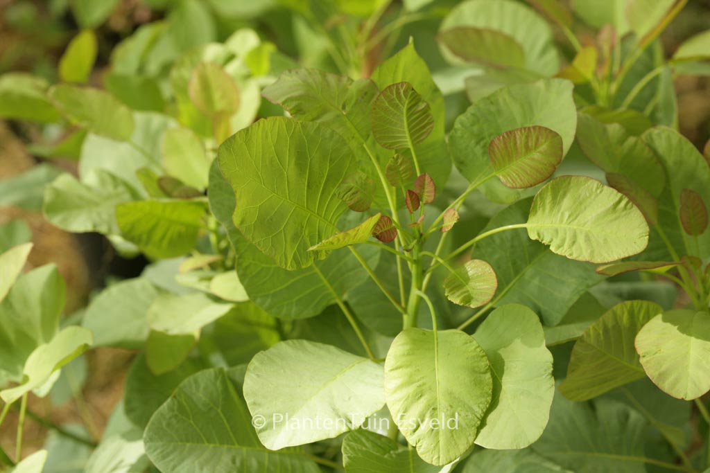 Ontluikend blad rood, late r blauwgroen; herfstkleur roserood. De hoogte na 10 jaar is 2 meter. De bloemkleur is rose / cremekleurig. De bloeiperiode is juni – juli. Deze plant is goed winterhard. Nederlandse naam : Pruikenboom . . Alleen op bestelling leverbaar. Levertijd minstens 1 week.
