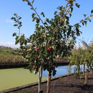 Chinese meidoorn met 2 cm grote, rode, eetbare vruchten. De hoogte na 10 jaar is 5 m. De bloemkleur is wit. De bloeiperiode is mei. Deze plant is goed winterhard. Aanbevolen aantal per vierkante meter : 1. Nederlandse naam : Chinese meidoorn . . Alleen op bestelling leverbaar. Levertijd minstens 1 week.