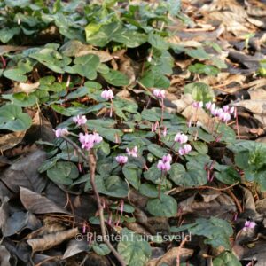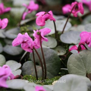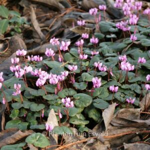 alpenviooltje. De gemiddelde hoogte is 10 cm. De bloemkleur is rose. De bloeiperiode is maart. Deze plant is goed winterhard. Aanbevolen aantal per vierkante meter : 15. Nederlandse naam : Rondbladige cyclaam . Deze plant heeft de volgende onderscheiding: AGM, Award of Garden Merit, 1993. . Alleen op bestelling leverbaar. Levertijd minstens 1 week.