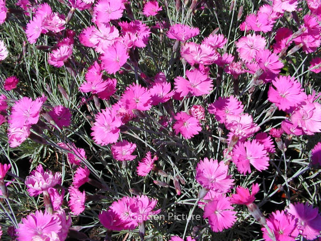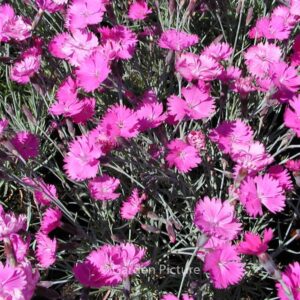 Rots-anjer met staalblauw blad; volle zon, goed doorlatend. De gemiddelde hoogte is 20 cm. De bloemkleur is fel rose. De bloeiperiode is mei – juli. Deze plant is zeer winterhard. Aanbevolen aantal per vierkante meter : 15. Nederlandse naam : Rotsanjer . . Alleen op bestelling leverbaar. Levertijd minstens 1 week.