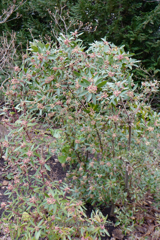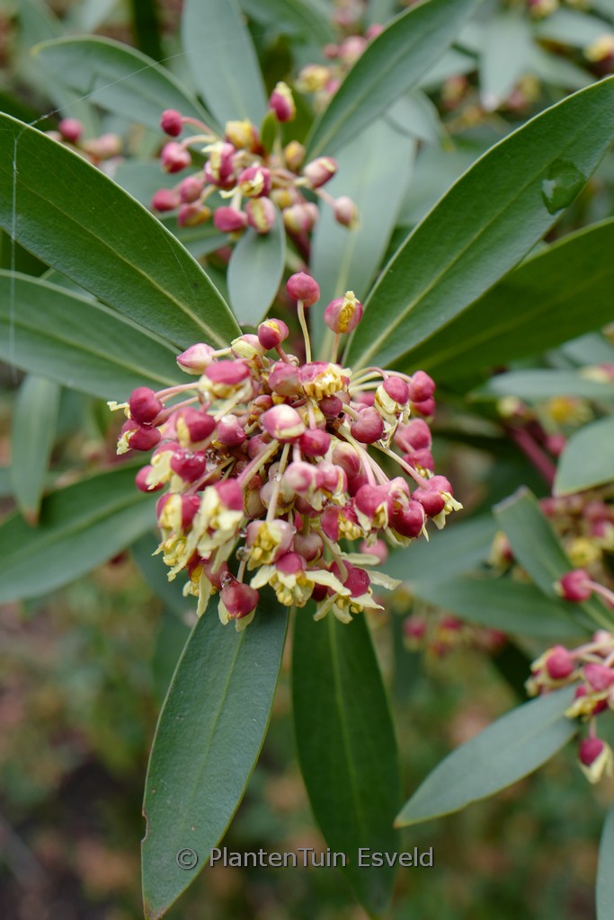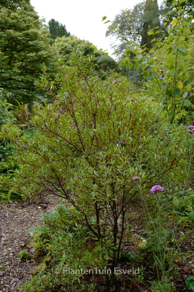 Mountain pepper uit Australie; opvallende rode stelen die leuk afsteken tegen het wintergroene blad. De winterhardheid was altijd een tikje problematisch, maar de laatste jaren lijken de winters geen enkel probleem meer te zijn voor deze vriendelijk ogende kleine struik. De hoogte na 10 jaar is 1,25 m. De bloemkleur is cremekleurig. De bloeiperiode is mei. Deze plant is matig winterhard. Aanbevolen aantal per vierkante meter : 1. . . Alleen op bestelling leverbaar. Levertijd minstens 1 week.
