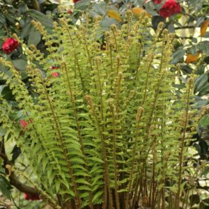 Stevige, opgaande stelen. De hoogte na 10 jaar is 60 cm. Deze plant is goed winterhard. Aanbevolen aantal per vierkante meter : 7. Nederlandse naam : Niervaren . . Alleen op bestelling leverbaar. Levertijd minstens 1 week.