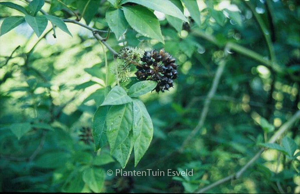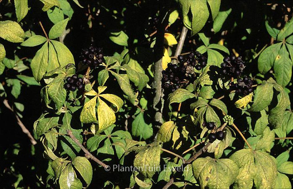 Siberische ginseng; zeer zeldzame, prikkelige heester uit de klimop-familie. De hoogte na 10 jaar is 1,5 m. De bloemkleur is cremewit; zwarte bessen. De bloeiperiode is juni – juli. Deze plant is zeer winterhard. Aanbevolen aantal per vierkante meter : 1. . . Alleen op bestelling leverbaar. Levertijd minstens 1 week.