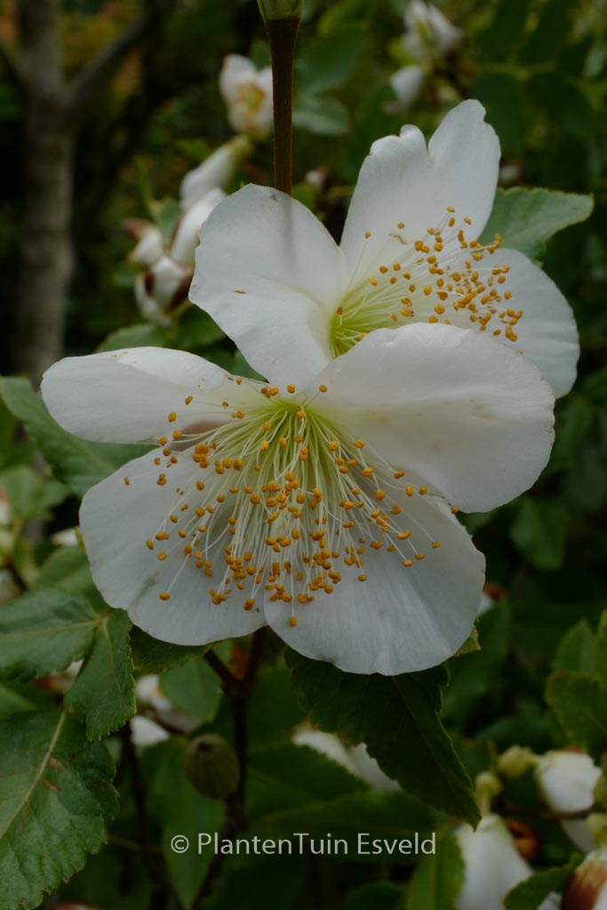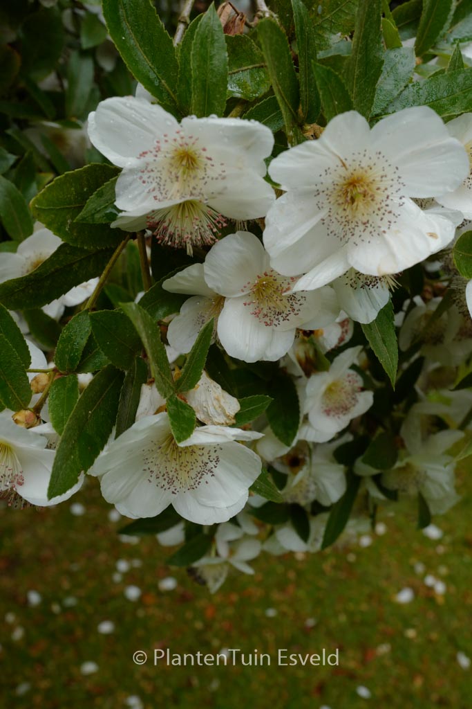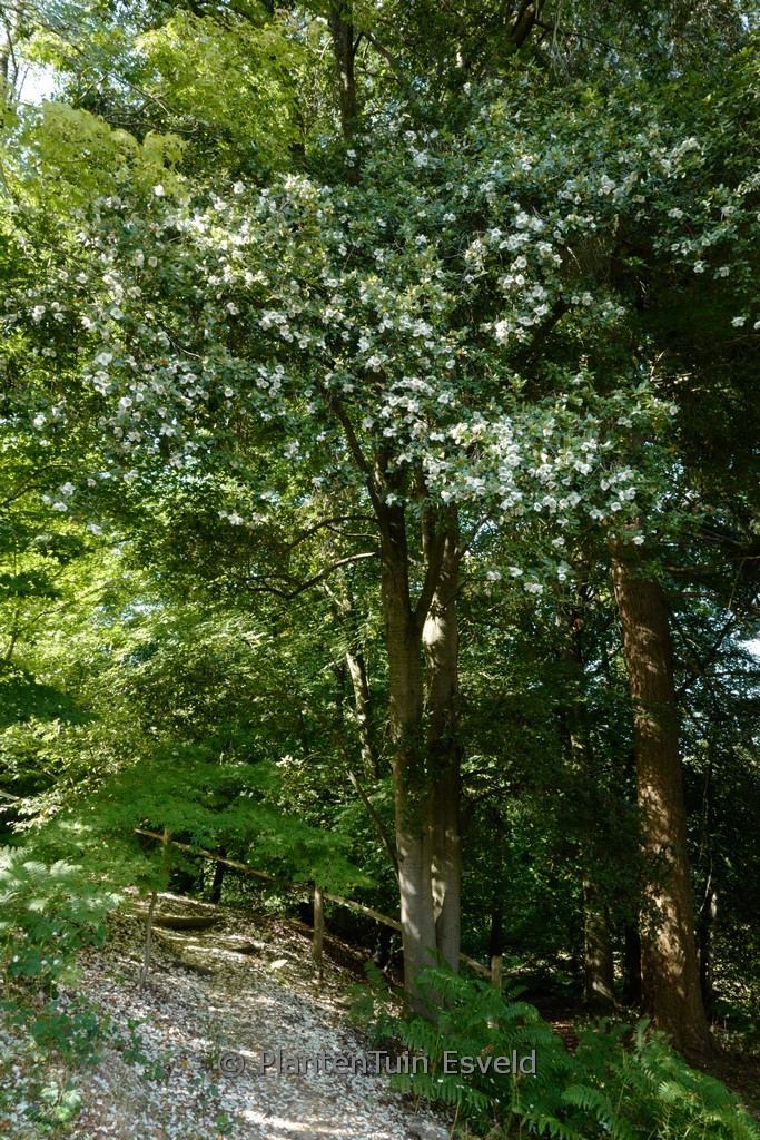 zuilvormige kleine boom met grote bloemen, beschut planten! en dan vervolgens enorm gaan genieten is het devies. In Avifauna heb ik als veldproef Eucryphia toegepast, simpelweg om te kijken of de winterhardheid voldoende is voor ons klimaat. Vooralsnog gaat dat goed. De hoogte na 10 jaar is 2 m. De bloemkleur is wit. De bloeiperiode is augustus – september. Deze plant is matig winterhard. Aanbevolen aantal per vierkante meter : 1. Nederlandse naam : Nymans eucryphia . Deze plant heeft de volgende onderscheiding: AGM, Award of Garden Merit, 1993. . Alleen op bestelling leverbaar. Levertijd minstens 1 week.