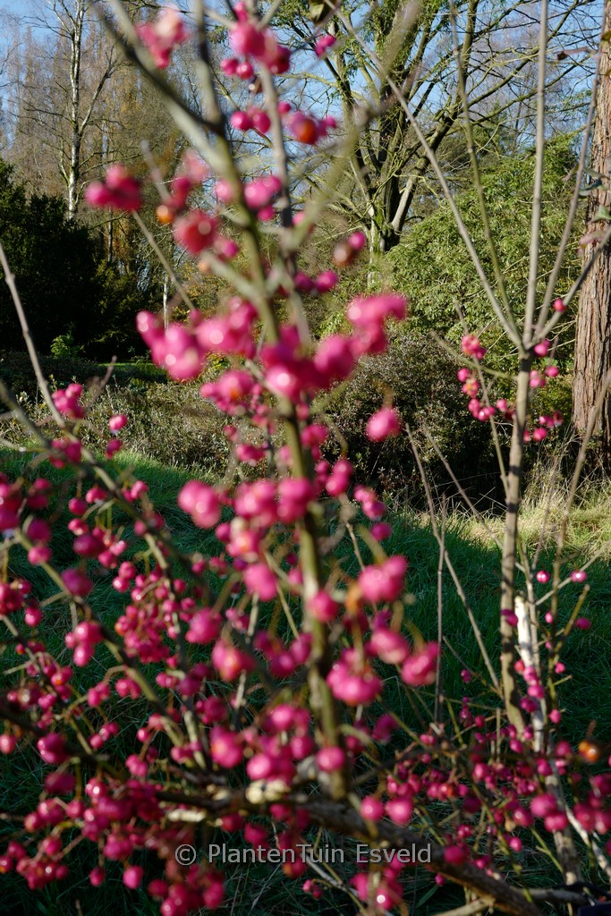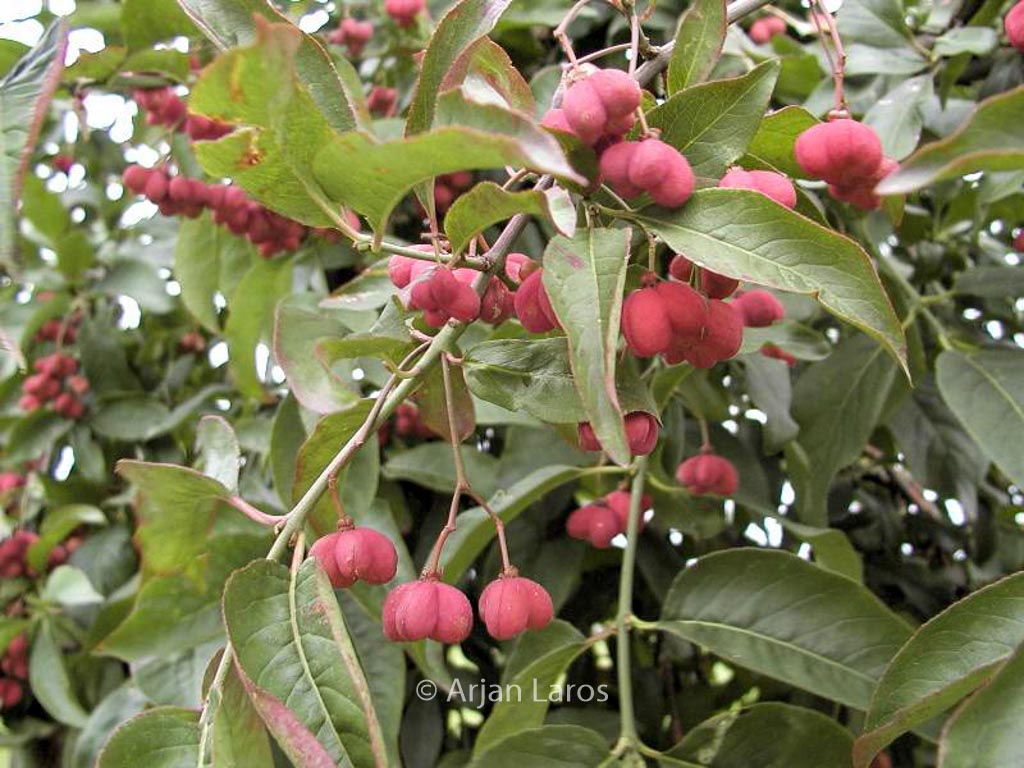 gewone kardinaalshoed met goede herfstkleur. De hoogte na 10 jaar is 350 cm. De beskleur is rose. De besperiode is september. Deze plant is zeer winterhard. Aanbevolen aantal per vierkante meter : 1. Nederlandse naam : Wilde kardinaalsmuts . . Alleen op bestelling leverbaar. Levertijd minstens 1 week.