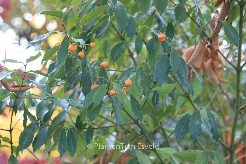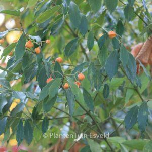 Klimmende struik met groot , wintergroen blad. De hoogte na 10 jaar is 3 m. De bloemkleur is cremekleurig. De bloeiperiode is juni. Deze plant is matig winterhard. Aanbevolen aantal per vierkante meter : 2. Nederlandse naam : Kardinaalsmuts . . Alleen op bestelling leverbaar. Levertijd minstens 1 week.