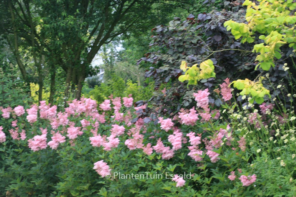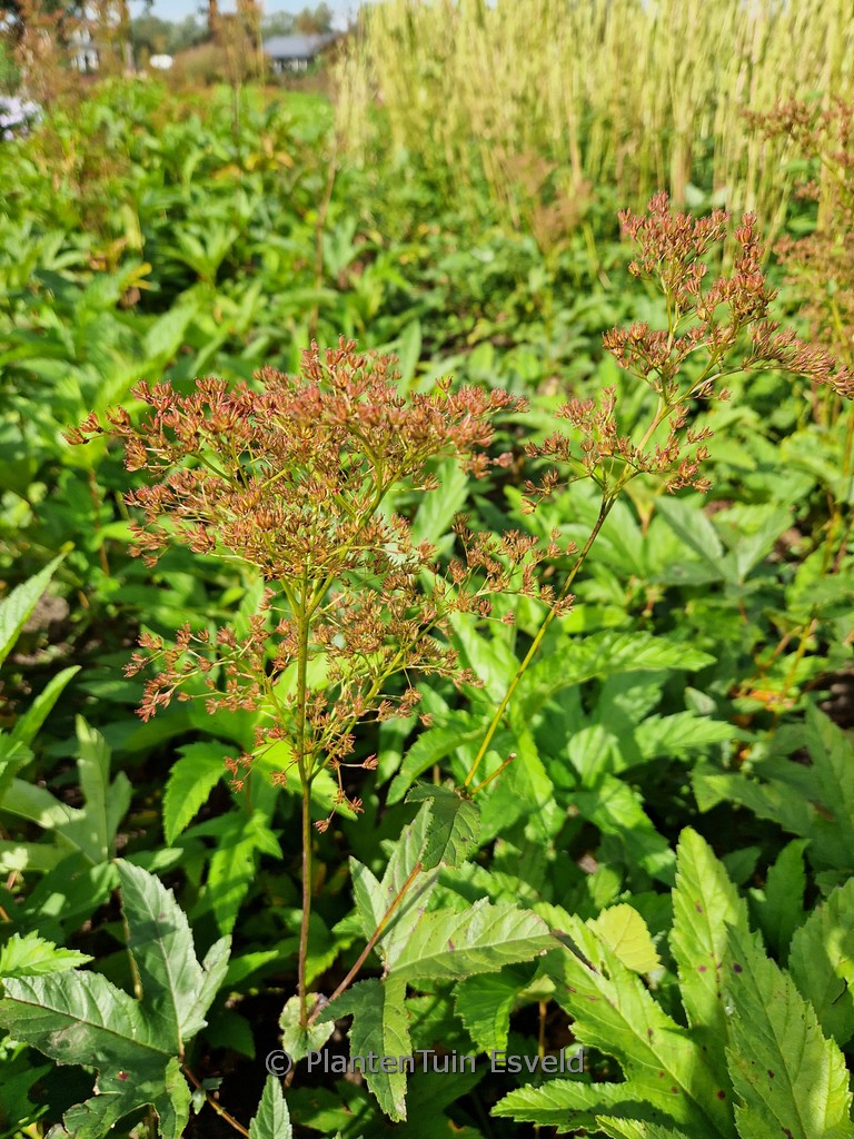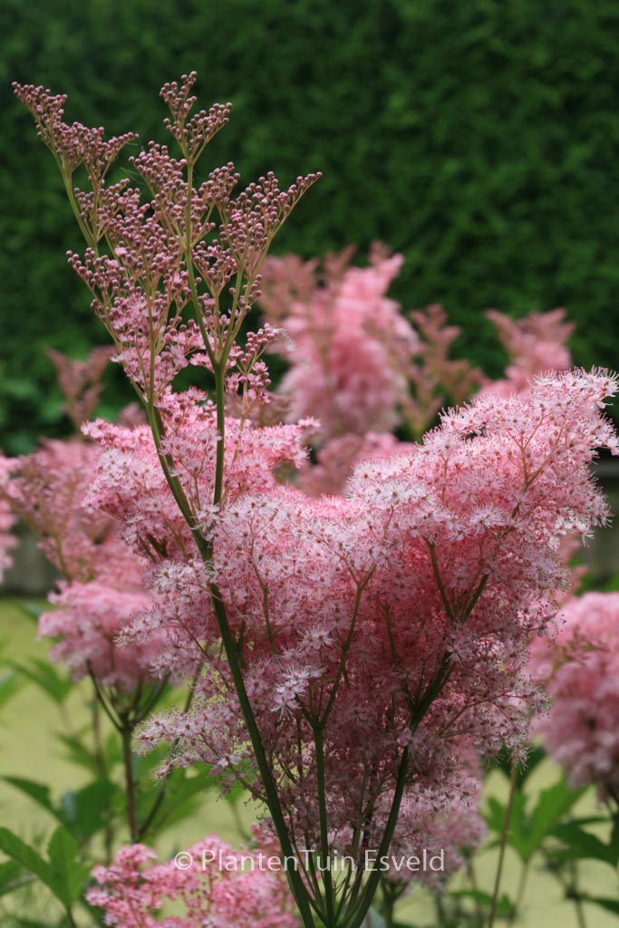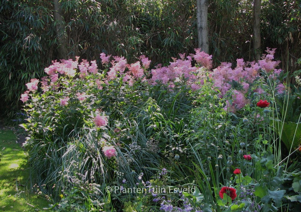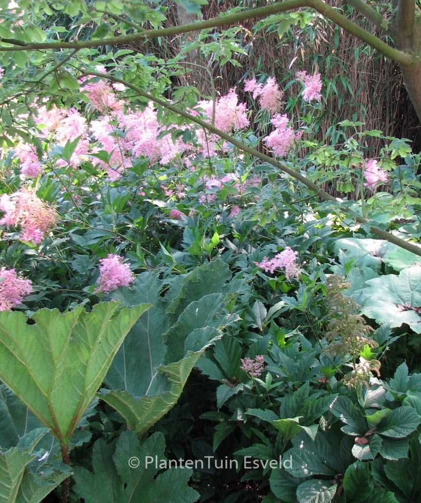 Moerasspiraea. Grote bloem pluimen aan indrukwekkende planten. Deze plant is een liefhebber van een vochtige grond. Ze kunnen door worteluitlopers een flink stuk tuin in beslag nemen, maar wat zijn ze mooi! Zelfs in de winter met rijp erop blijft het een sieraad. De gemiddelde hoogte is 175 cm. De bloemkleur is rose. De bloeiperiode is juni – augustus. Deze plant is goed winterhard. Aanbevolen aantal per vierkante meter : 5. Dit artikel is slechts in kleine hoeveelheden beschikbaar en kan plotseling niet meer leverbaar blijken. . Deze plant heeft de volgende onderscheiding: AGM, Award of Garden Merit, 1993. . Alleen op bestelling leverbaar. Levertijd minstens 1 week.