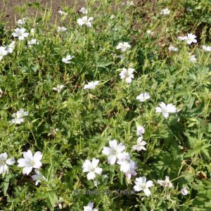 Bloemen eerst zachtroze en dan wit; lichtgroen blad. De gemiddelde hoogte is 40 cm. De bloemkleur is wit. De bloeiperiode is juni – augustus. Deze plant is zeer winterhard. Aanbevolen aantal per vierkante meter : 5. Nederlandse naam : Basterd-ooievaarsbek . . Alleen op bestelling leverbaar. Levertijd minstens 1 week.