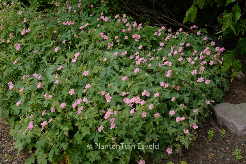 Een meer compacte groei; overwoekert de buurplanten niet. De gemiddelde hoogte is 35 cm. De bloemkleur is zalmrose. De bloeiperiode is juni – september. Deze plant is goed winterhard. Aanbevolen aantal per vierkante meter : 5. Nederlandse naam : Basterd-ooievaarsbek . Deze plant heeft de volgende onderscheiding: AGM, Award of Garden Merit, 2007. . Alleen op bestelling leverbaar. Levertijd minstens 1 week.