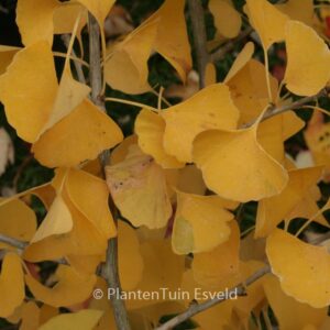 Ginkgo met opvallende goudgele voorjaarskleur!. De hoogte na 10 jaar is 4 meter. De bladkleur is geel in voorjaar, later bont. Deze plant is zeer winterhard. Nederlandse naam : Japanse notenboom . . Alleen op bestelling leverbaar. Levertijd minstens 1 week.