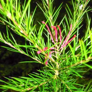Kuipplant uit Australie met exotische bloemen en smal blad. De gemiddelde hoogte is 1,25 m. De bloemkleur is rood. De bloeiperiode is mei – augustus. Deze plant is matig winterhard. Nederlandse naam : Australische zilvereik . . Alleen op bestelling leverbaar. Levertijd minstens 1 week.