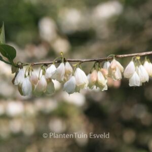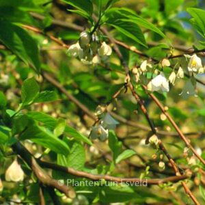 sneeuwklokjesboom ontwikkelt zich tot boom maar dat gaat niet reuze snel. Bekend vanwege de leuke klokvormige bloemen, maar de groene geribde vruchten zijn ook decoratief. Als het een beetje meezit geeft de Halesia in de herfst een goudgele herfst kleur, maar dat is een beetje standplaats afhankelijk. De hoogte na 10 jaar is 8 m. De bloemkleur is wit. De bloeiperiode is mei – juni. Deze plant is zeer winterhard. Aanbevolen aantal per vierkante meter : 1. Nederlandse naam : Sneeuwklokjesboom Mogelijk alternatief : Halesia carolina. Belangrijkste verschil: Halesia carolina vrijwel hetzelfde. . Alleen op bestelling leverbaar. Levertijd minstens 1 week.
