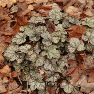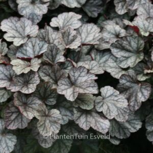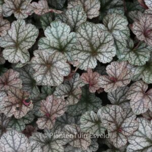 zilvergeaderd blad met donkerrode onderkleur Het pruperklokje is er in honderden variaties. Elk jaar komen er weer nieuwe varianten op de markt. Maar Silver Scrolls blijft gewoon een goede selectie. De gemiddelde hoogte is 40 cm. De bloemkleur is creme. De bloeiperiode is juni – juli. Deze plant is zeer winterhard. Aanbevolen aantal per vierkante meter : 7. Dit artikel is slechts in kleine hoeveelheden beschikbaar en kan plotseling niet meer leverbaar blijken. Nederlandse naam : Purperklokje . . Alleen op bestelling leverbaar. Levertijd minstens 1 week.
