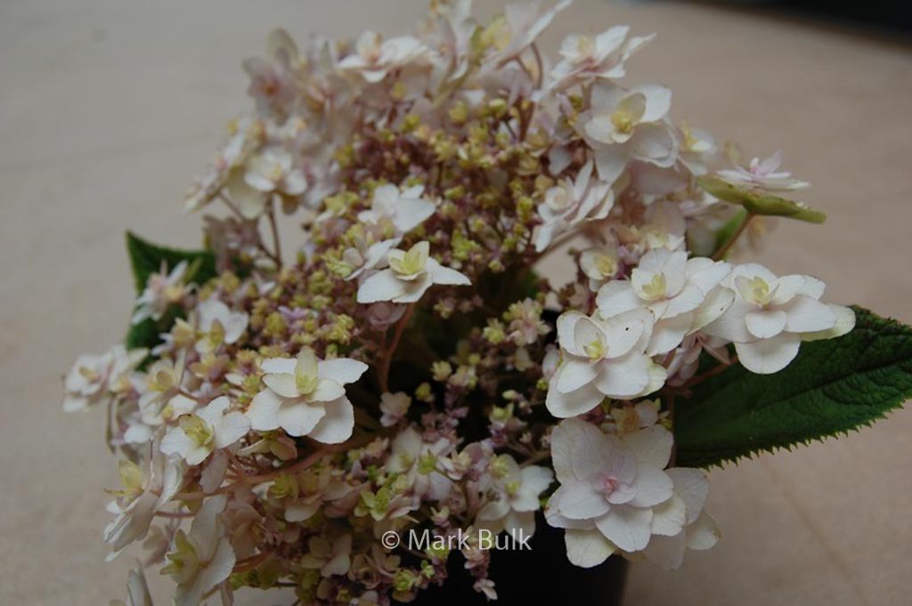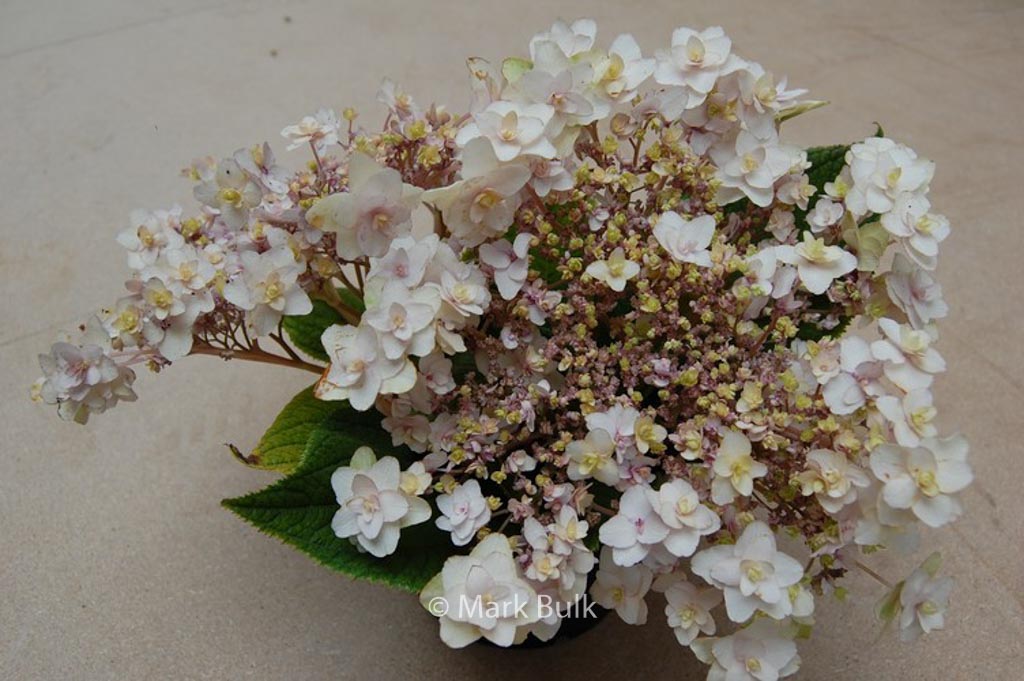 dubbelbloemige hortensia voor in de schaduw De dubbele bloemen zijn gerangschikt in een scherm. De lichtroze bloemkleur en het ontbreken van contrast tussen de lokbloemen en de echte bloemen maken dit een heel herkenbare hortensia. De hoogte na 10 jaar is 100 cm. De bloemkleur is zalmrose. De bloeiperiode is juli – augustus. Deze plant is goed winterhard. Aanbevolen aantal per vierkante meter : 3. Nederlandse naam : Hortensia . . Alleen op bestelling leverbaar. Levertijd minstens 1 week.
