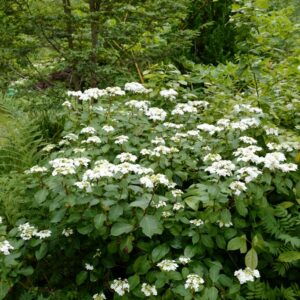 Schermbloemige hortensia met gevulde bloemen. De naamsverwarring rond deze cultivar is groot, Doppio Bianco en Wedding Gown zijn twee merknamen waaronder je deze plant ook vaak vindt. Maar het blijft een geweldige schermhortensia. Extra kwaliteit is de mooie herfstkleur van de bloemen. De hoogte na 10 jaar is 1. 25 m. De bloemkleur is zuiver wit, rood in herfst. De bloeiperiode is juli – september. Deze plant is goed winterhard. Aanbevolen aantal per vierkante meter : 3. Nederlandse naam : Boerenhortensia . Deze plant heeft de volgende onderscheiding: AGM, Award of Garden Merit, 2018. . Is aanwezig op de kwekerij. Kijk ook op de voorraadlijst op onze site.