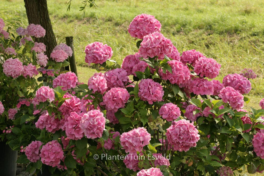 bolbloemige hortensiaa die zich makkelijk laat blauwen. De hoogte na 10 jaar is 150 cm. De bloemkleur is blauw of rose. De bloeiperiode is juni – augustus. Deze plant is goed winterhard. Nederlandse naam : Boerenhortensia . . Alleen op bestelling leverbaar. Levertijd minstens 1 week.