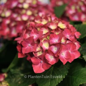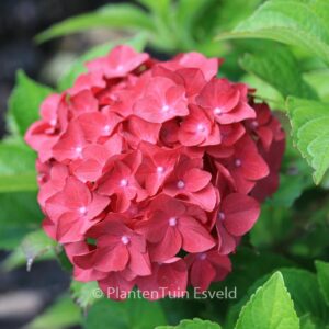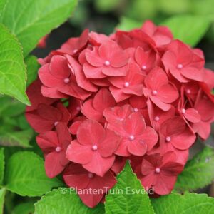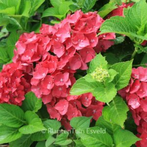 bolbloemige Hortensia in heldere kleurstelling. De hoogte na 10 jaar is 100 cm. De bloemkleur is rood. De bloeiperiode is juli – september. Deze plant is goed winterhard. Aanbevolen aantal per vierkante meter : 2. Nederlandse naam : Boerenhortensia . . Alleen op bestelling leverbaar. Levertijd minstens 1 week.