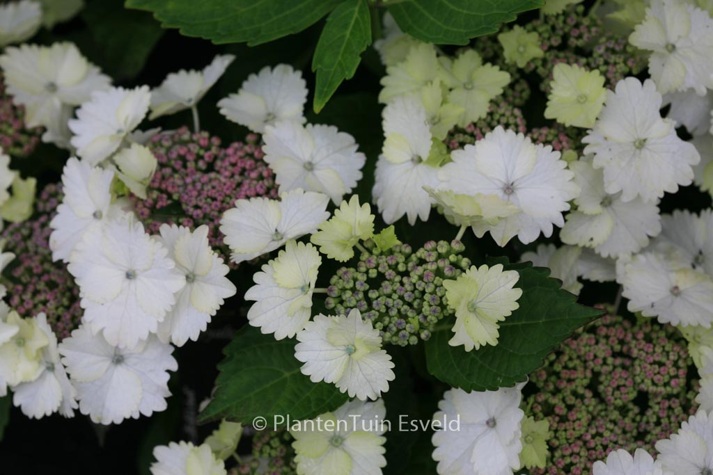schermbloemige hortensia met gefranste bloemblaadjes. De hoogte na 10 jaar is 125 cm. De bloemkleur is wit. De bloeiperiode is juli – september. Deze plant is goed winterhard. Aanbevolen aantal per vierkante meter : 1. Nederlandse naam : Boerenhortensia . Deze plant heeft de volgende onderscheiding: AGM, Award of Garden Merit, 2018. . Alleen op bestelling leverbaar. Levertijd minstens 1 week.