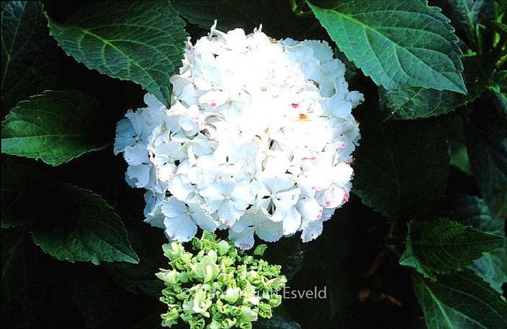 bolbloemige franse hortensia Een beetje uit de oude doos, maar dat is vaak een goed teken. Als een cultivar het lang volhoudt in de cultuur betekent dat meestal dat het simpelweg een goede cultivar is. De hoogte na 10 jaar is 150 cm. De bloemkleur is wit. De bloeiperiode is juli – september. Deze plant is goed winterhard. Aanbevolen aantal per vierkante meter : 3. Nederlandse naam : Boerenhortensia . . Alleen op bestelling leverbaar. Levertijd minstens 1 week.