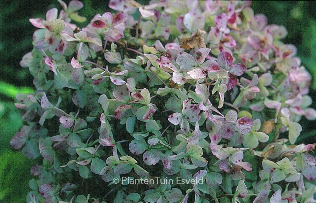 de eerste tuinhortensia door von Siebold benaamd, bolbloem Zijn vrouw in Leiderdorp was misschien niet alleen maar blij, de plantis immers vernoemd naar zijn Japanse vriendin. Dus cultuurhistorisch alleen al reuze interessant. Ook nog best een charmante hortensia op de koop toe met een vriendelijke lichte bloemkleur en kleine bloemen. De hoogte na 10 jaar is 150 cm. De bloemkleur is lichtblauw. De bloeiperiode is juli – september. Deze plant is zeer winterhard. Aanbevolen aantal per vierkante meter : 2. Nederlandse naam : Boerenhortensia Mogelijk alternatief : Hydrangea macrophylla. Belangrijkste verschil: Hydrangea macrophylla ‘Otaksa’ oorspronkelijke introductie Japan. . Alleen op bestelling leverbaar. Levertijd minstens 1 week.