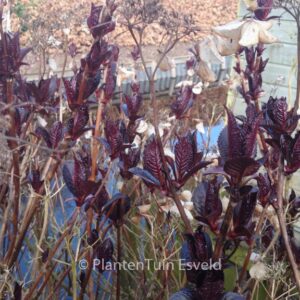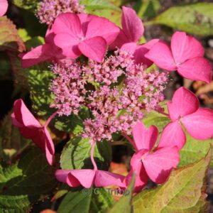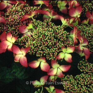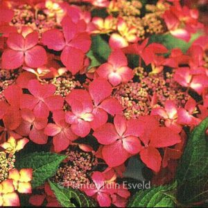 schermbloemige hortensia met opvallende bloeiwijze Het jonge voorjaarsblad is opvallend rood, later in de zomer bronsgroen. De hoogte na 10 jaar is 125 cm. De bloemkleur is rose met een licht hart. De bloeiperiode is juli – september. Deze plant is goed winterhard. Aanbevolen aantal per vierkante meter : 1. Nederlandse naam : Boerenhortensia . . Alleen op bestelling leverbaar. Levertijd minstens 1 week.