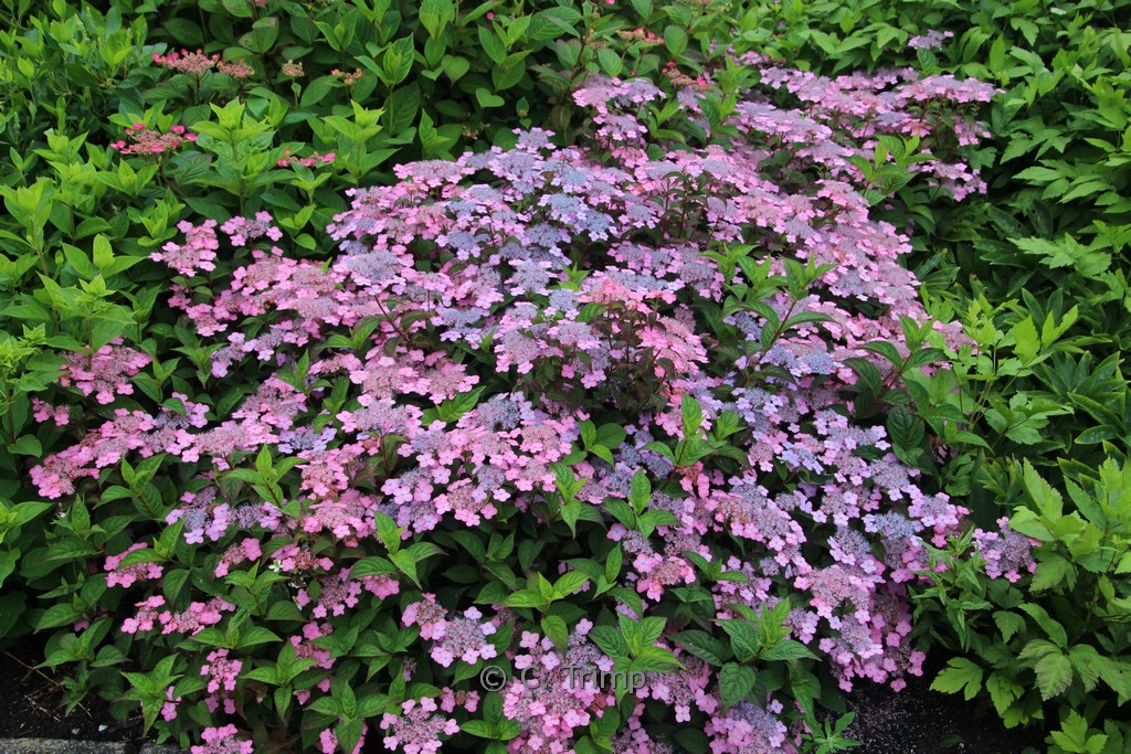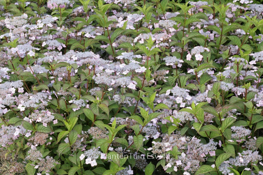 kleinblijvende hortensia met mooie kleine bloemschermen en een goede herfstkleur van het blad. Een van de zeer compact groeiende berghortensia’s. Snoeien is dan ook niet echt nodig. En let op, na snoei bloeien ze een jaartje niet. De hoogte na 10 jaar is 75 cm. De bloemkleur is rose. De bloeiperiode is juni – augustus. Deze plant is goed winterhard. Aanbevolen aantal per vierkante meter : 2. Nederlandse naam : Berghortensia . . Is aanwezig op de kwekerij. Kijk ook op de voorraadlijst op onze site.