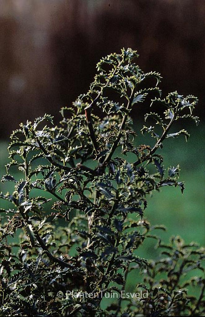 bizargroeiende hulst met smal zachtgedoornd blad. De hoogte na 10 jaar is 150 cm. De bladkleur is donkergroen. Deze plant is zeer winterhard. Nederlandse naam : Hulst . . Alleen op bestelling leverbaar. Levertijd minstens 1 week.