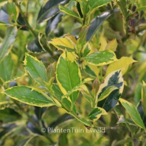 bonte beshulst rijk vruchtdragend. De hoogte na 10 jaar is 300 cm. De beskleur is rood. Deze plant is goed winterhard. Nederlandse naam : Hulst . Deze plant heeft de volgende onderscheiding: Getuigschrift van Verdienste 1e Klasse van de Koninklijke Vereniging voor Boskoopse Culturen 1910. . Alleen op bestelling leverbaar. Levertijd minstens 1 week.